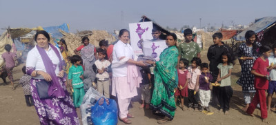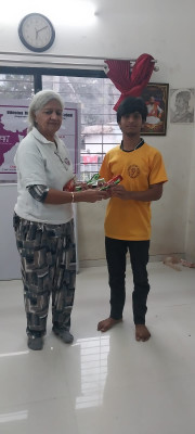 Distribution of pav bhaji, jalebi, pancakes and slippers to more than 200 boys and girls.