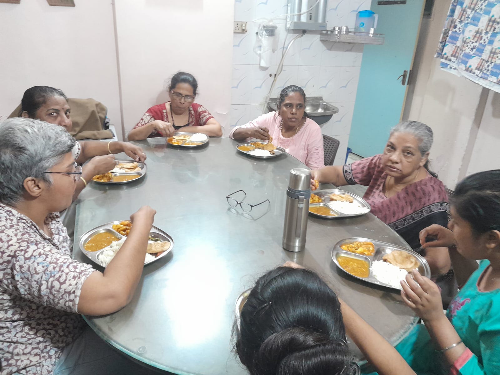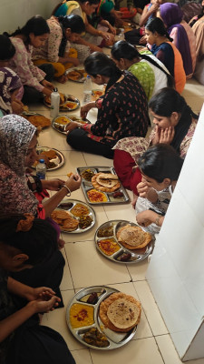 UBAT organized meals for 35 Tribal girls,who are sheltered in Kanya Chhatralaya, Adivasi Seva Mandal. Everybody beautifully performed Bhramari pranayam, Om chanting, and prayer before meal