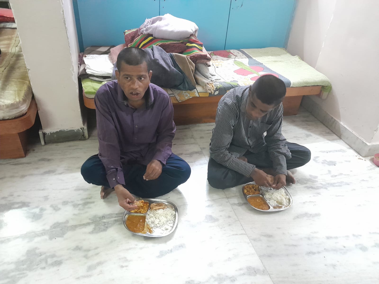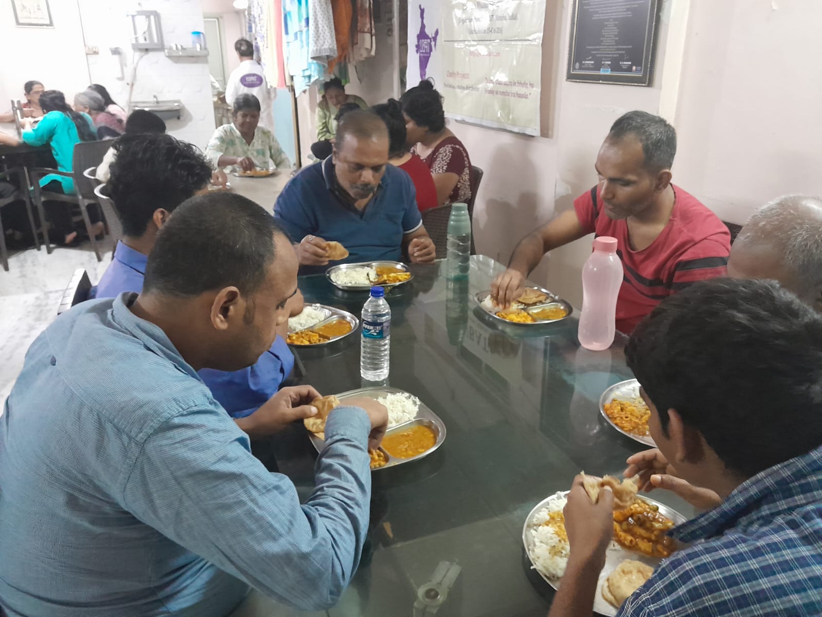 Distribution of bhaji puri and rice to more than 70 people.