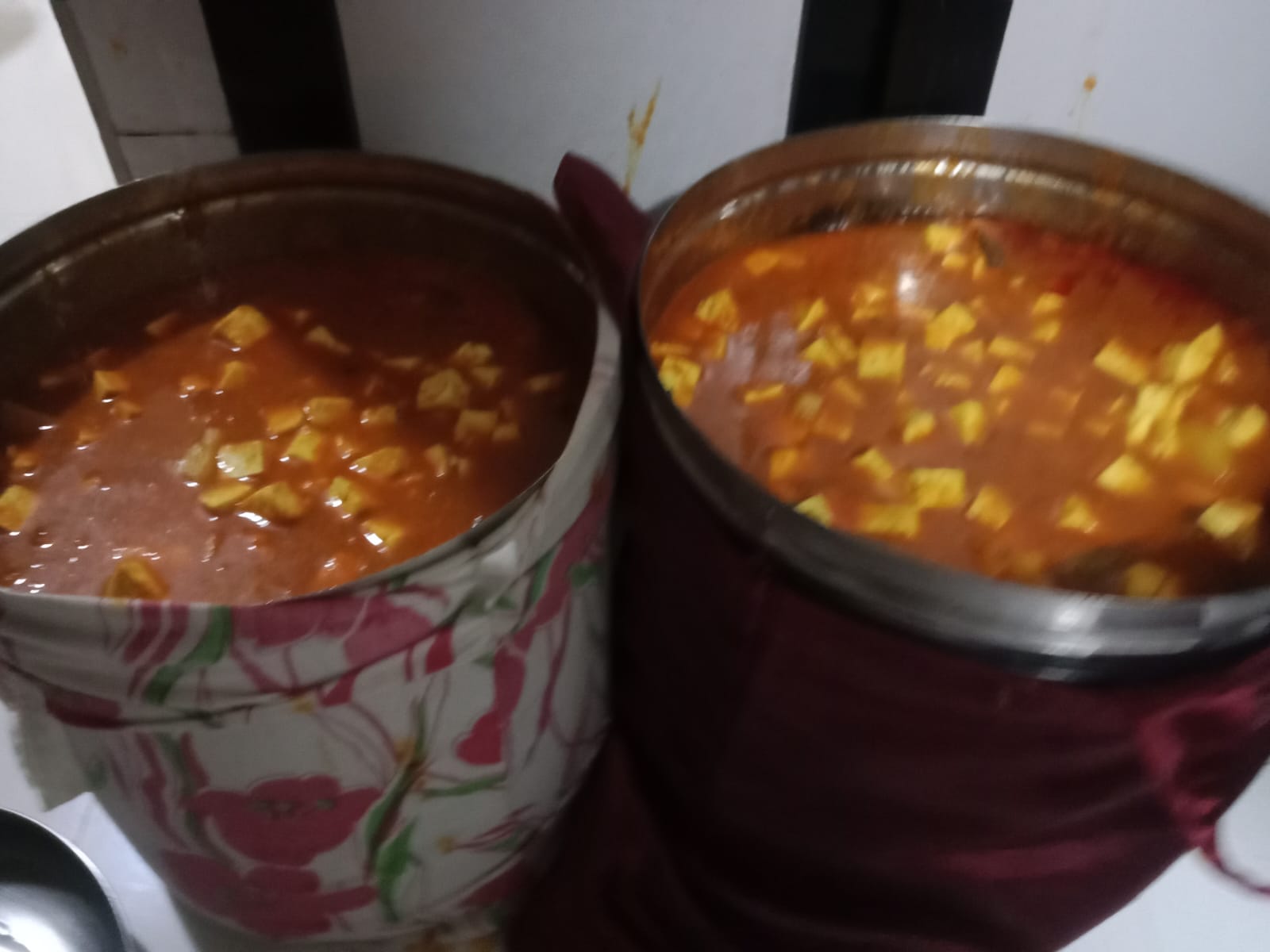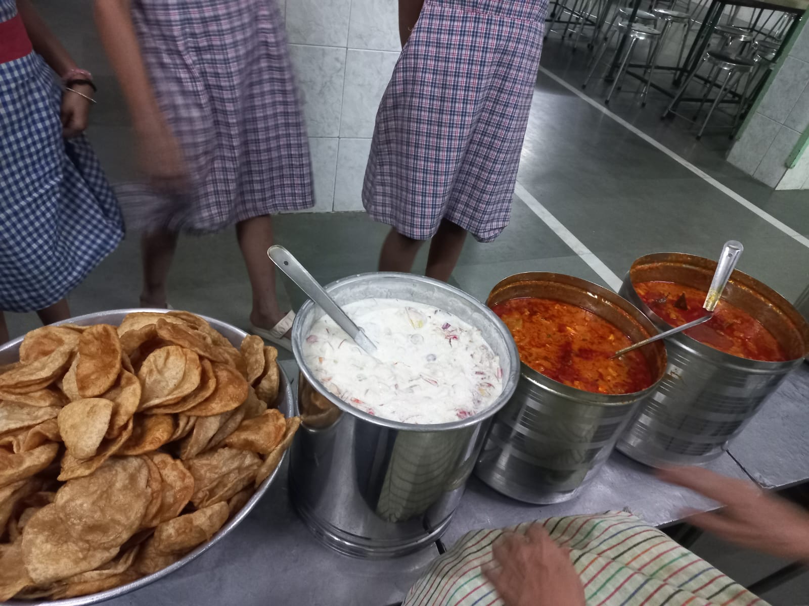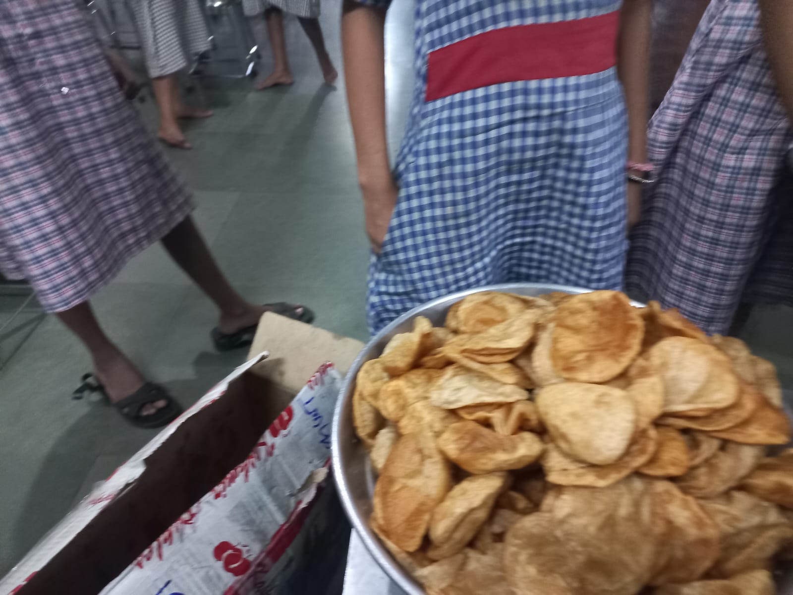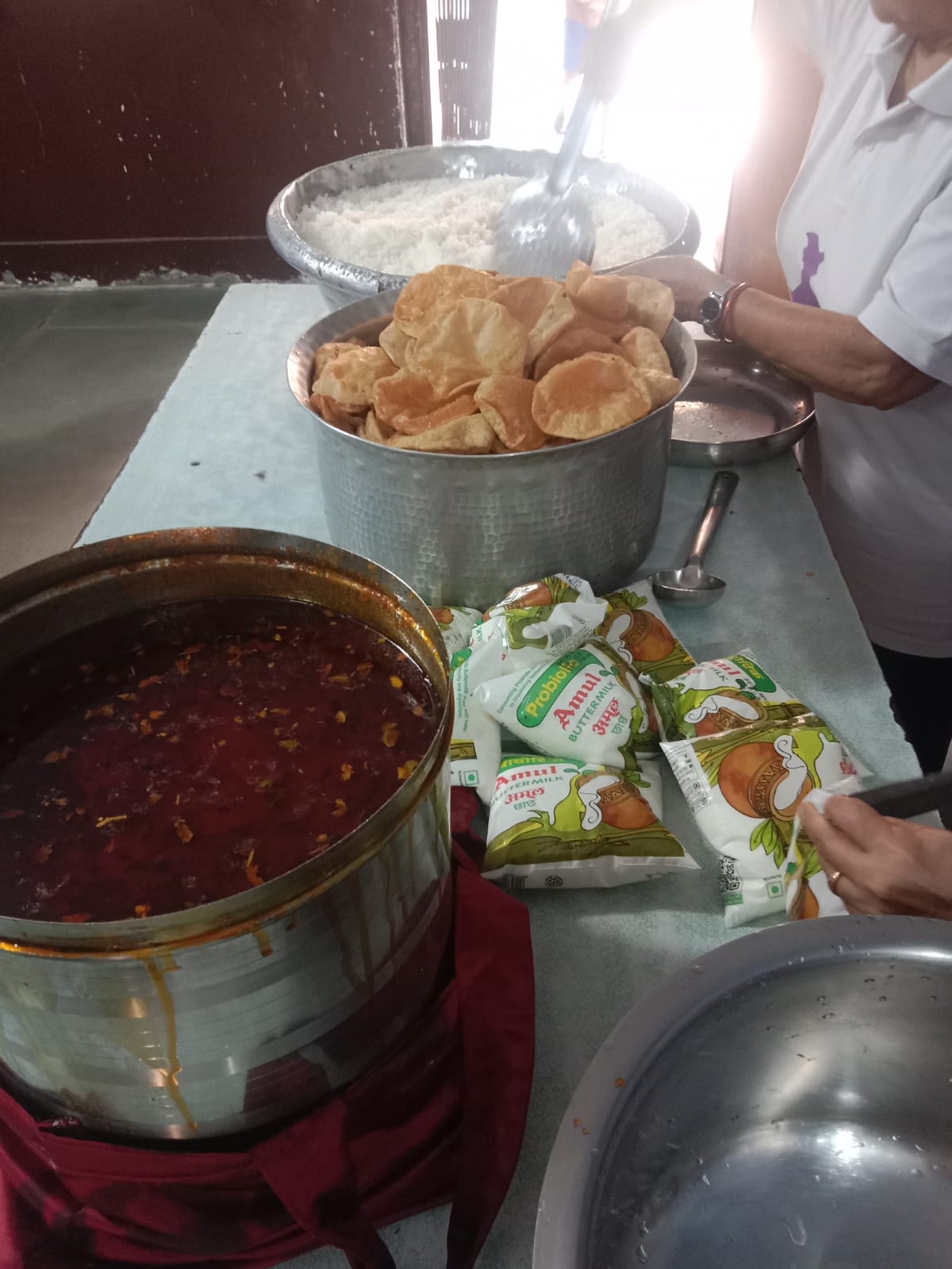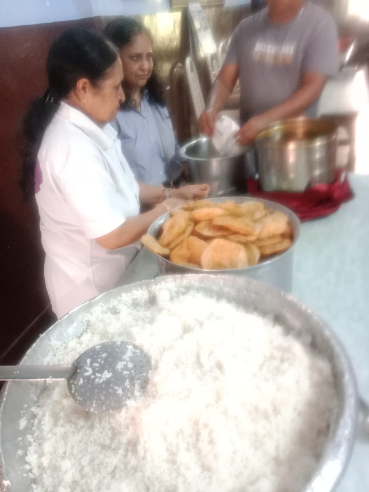 Distribution of chole, puri, rice, chanch to 60 kids